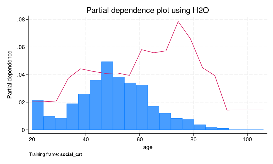 . h2omlgraph shapvalues, obs(5) . h2omlgraph pdp age (output omitted)